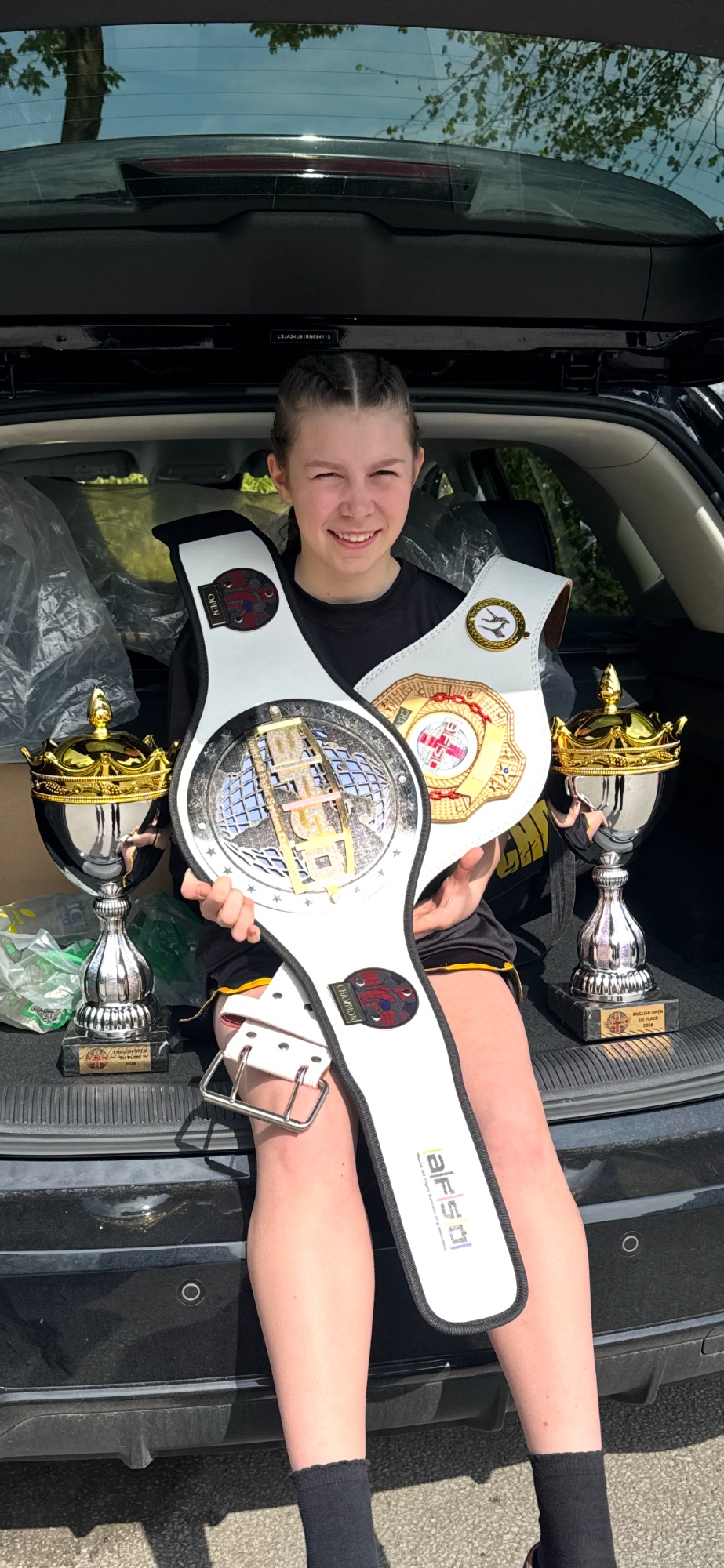 Skyla - Marie year 8, has competed in Muay Thai for about 4 years and is also IFMA TEAM GB MUAY THAI SILVER MEDALLIST.  She entered her first  K1 kickboxing tournament Sunday 26th April