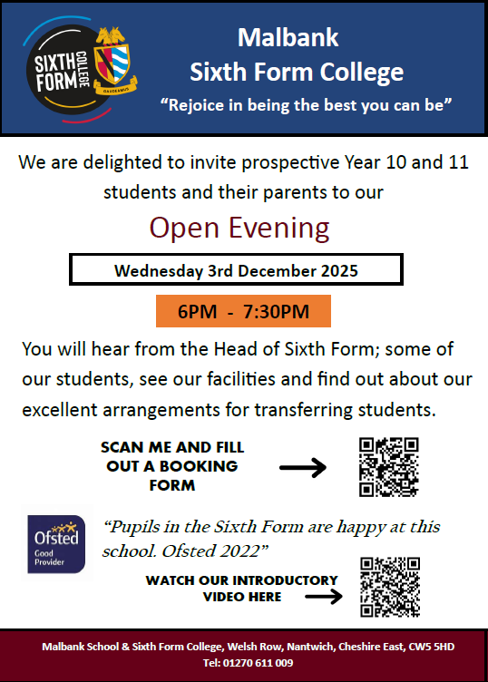 It is a privilege to lead and support the next generation and the team here at Malbank are committed to providing each and every student with the best sixth form experience they could wish for. We look forward to meeting you.